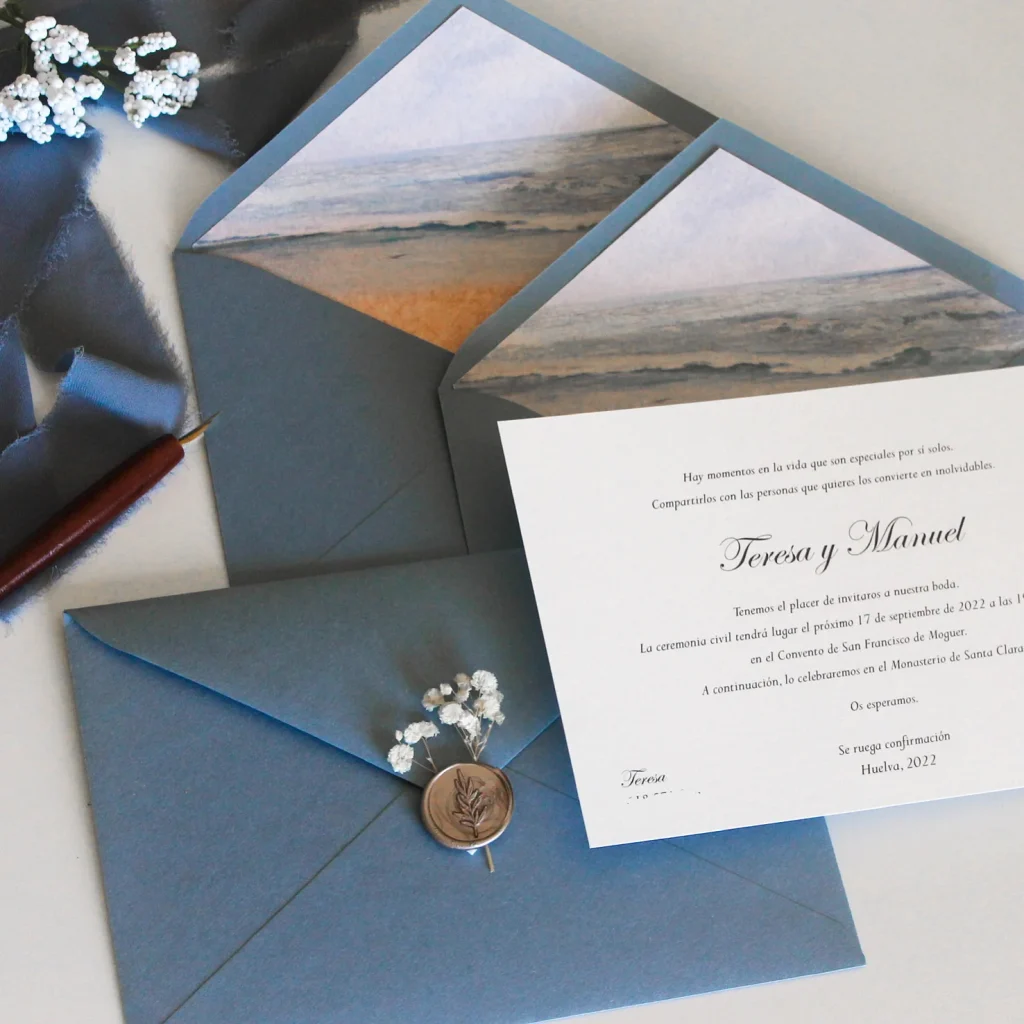 Realza tus invitaciones con nuestros complementos exquisitos. Desde elegantes sobres hasta sellos lacres personalizados, cada detalle está diseñado para añadir un toque de distinción a tu gran día. Descubre cómo nuestros complementos pueden elevar la presentación de tus invitaciones y hacer que cada momento sea aún más especial.
