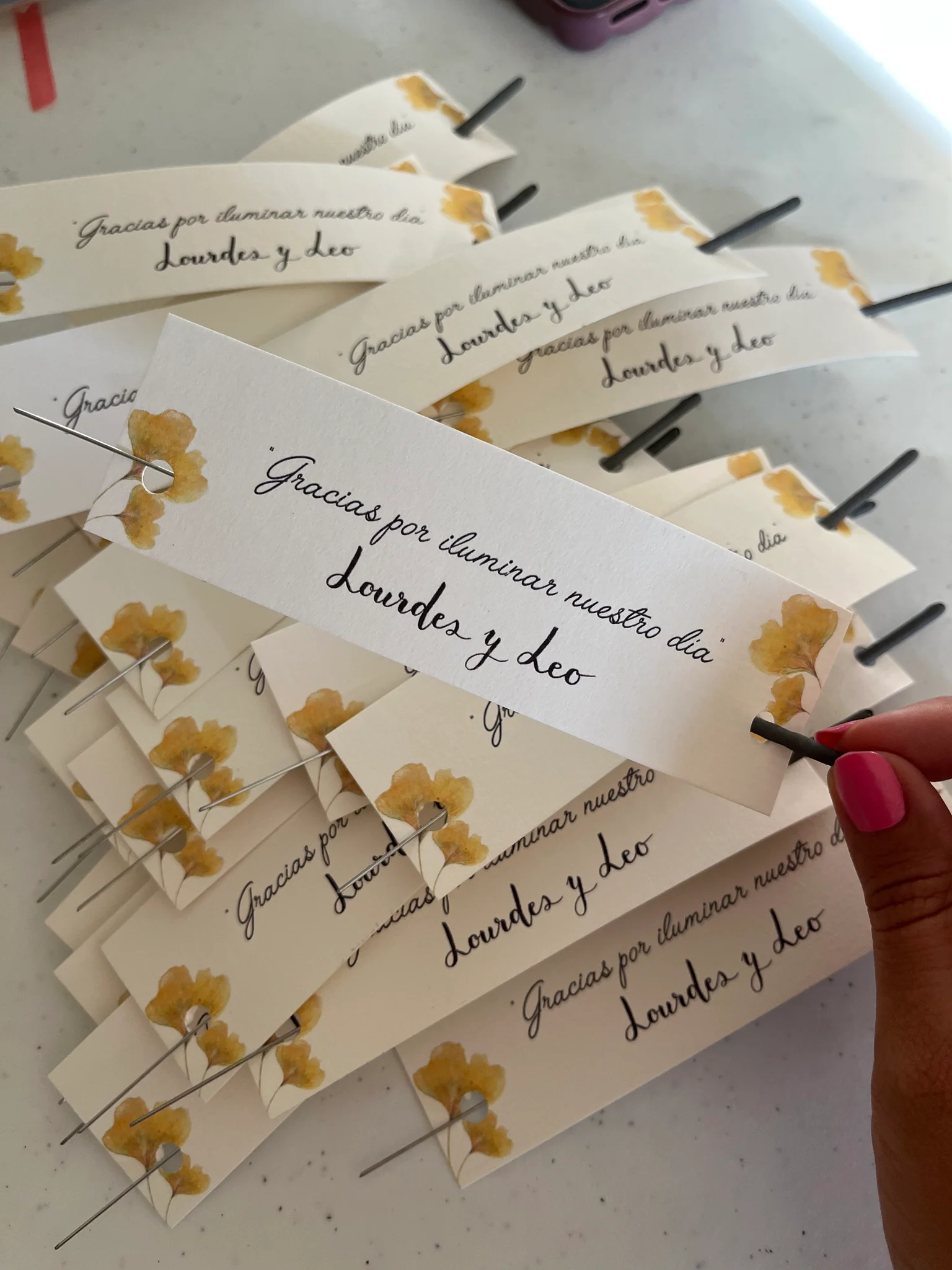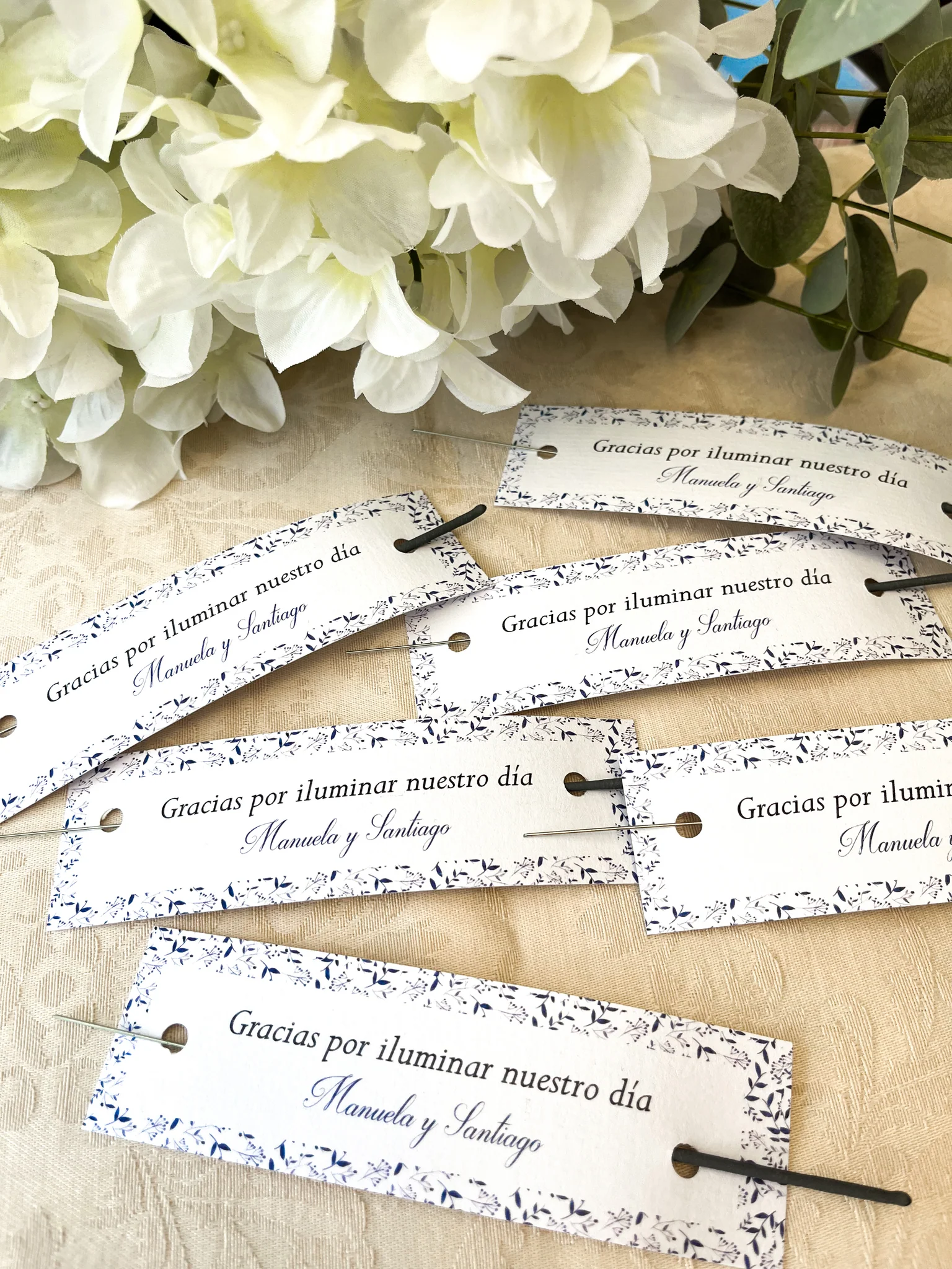 Cada set incluye tanto la bengala como un cartel personalizado con vuestros nombres y un mensaje especial, agradeciendo a los invitados por ser parte de este día tan importante. Estos carteles están elaborados en papel de alta calidad y pueden ser personalizados con los colores y estilo de tu boda.