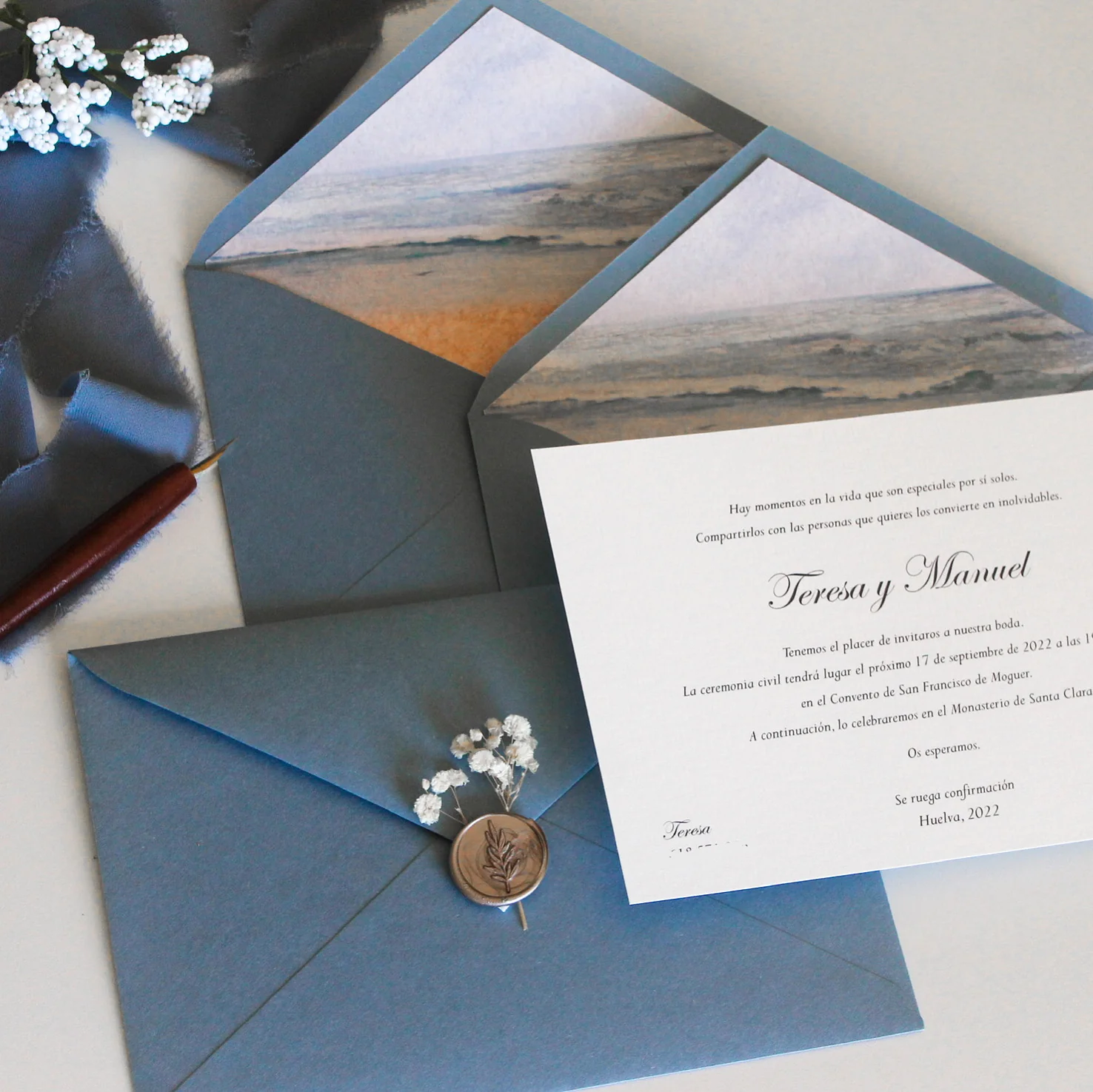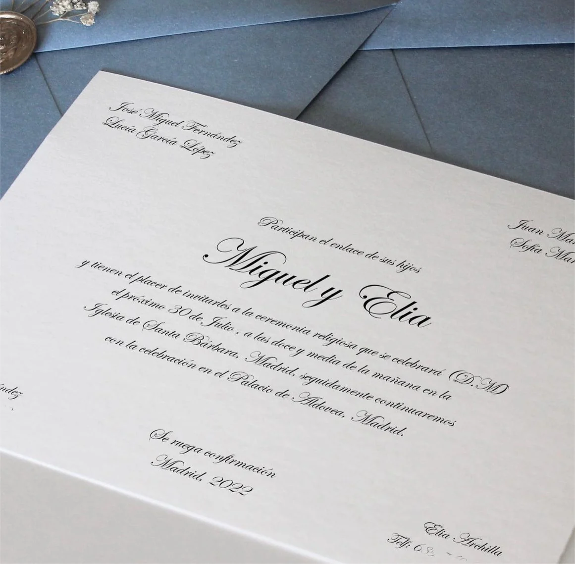 El precio incluye únicamente la invitación. Los sobres se venden por separado para que puedas elegir el que mejor se adapte a tus necesidades y preferencias. Estamos a tu disposición para asesorarte y ayudarte a seleccionar el sobre perfecto para tu invitación Clásica.