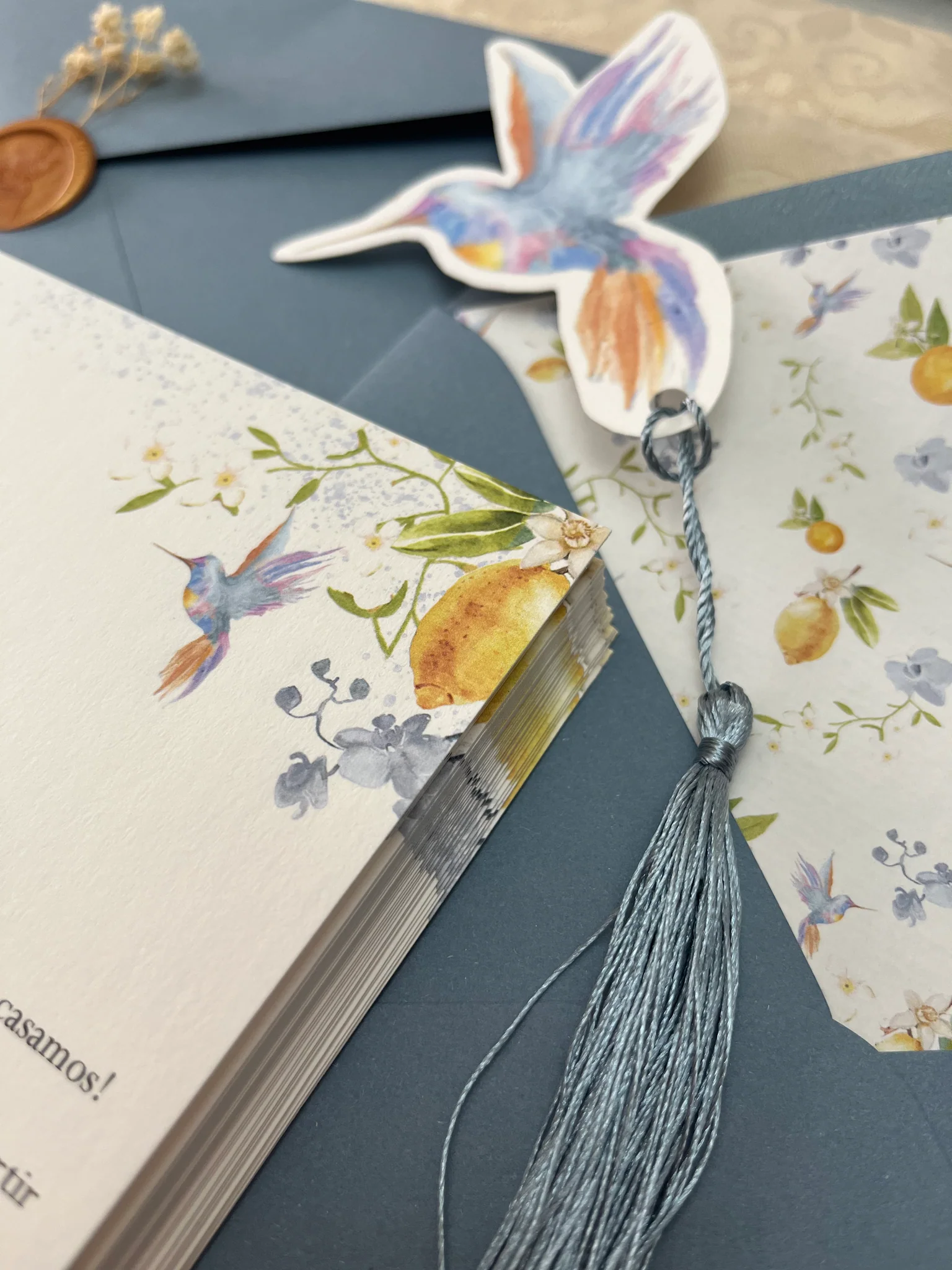 La invitación Colibrí es la elección perfecta para quienes buscan una combinación de elegancia y frescura en su evento especial.