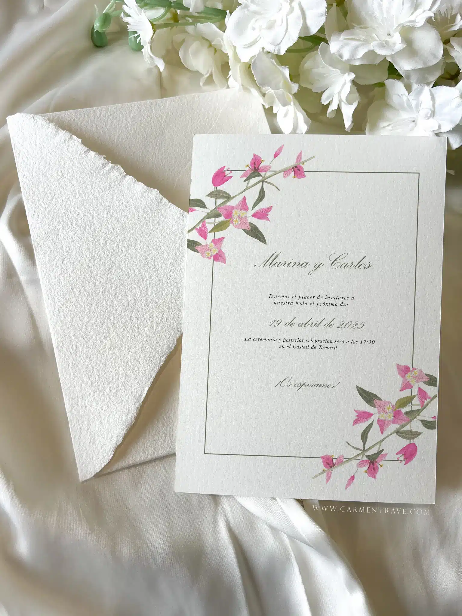 📩 El precio incluye la invitación impresa en papel de alta calidad. Los sobres y complementos se adquieren por separado, y estaremos encantados de ayudarte a elegir los que mejor encajen con tu diseño.