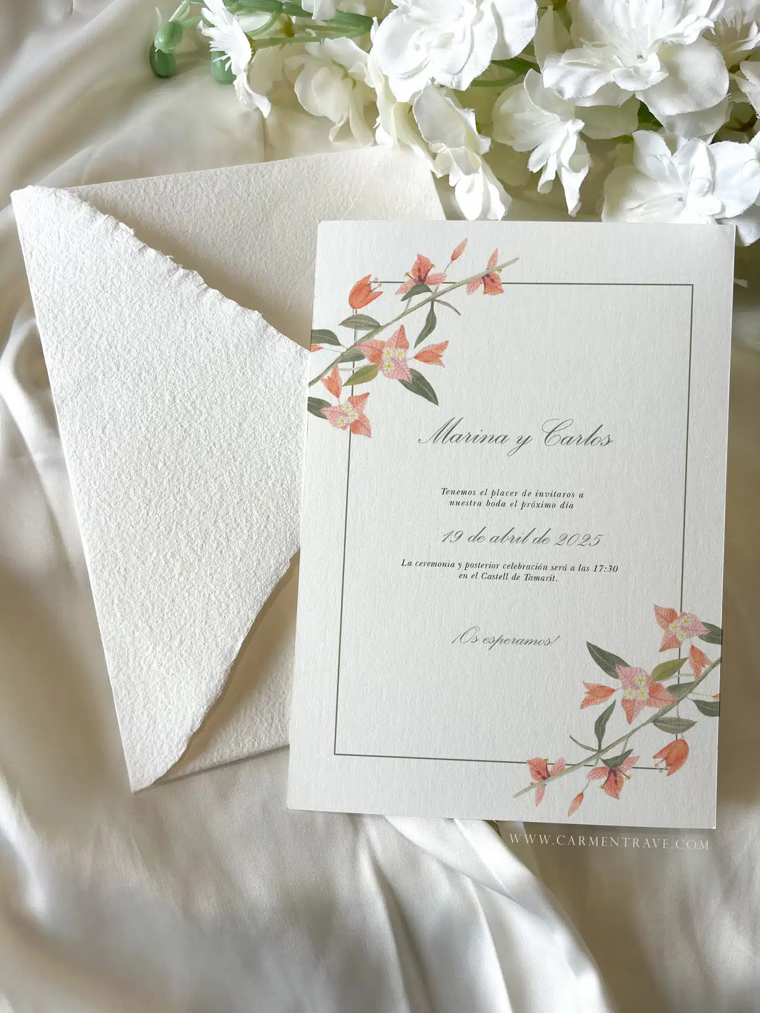 🖼️ Diseño creado en exclusiva para Your Perfect Invite, con ilustraciones botánicas originales y acabados cuidados.