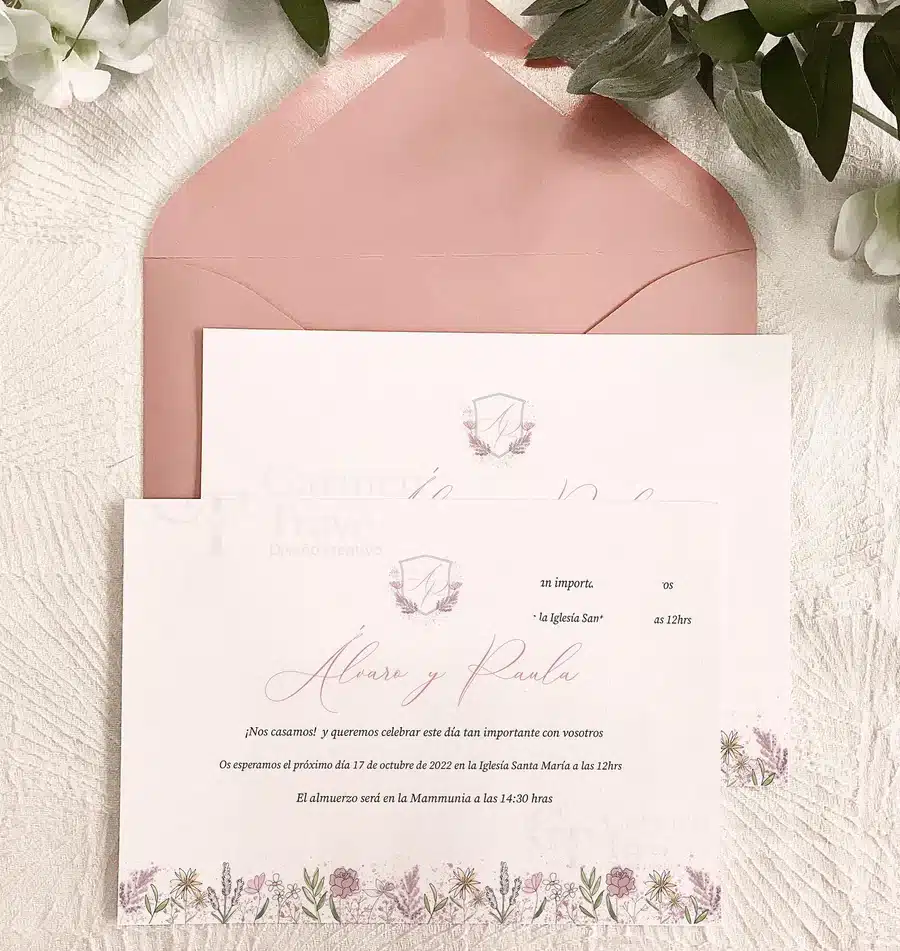 Nota: El sobre rosa empolvado y los complementos decorativos se adquieren por separado. Para presupuestos personalizados, consulta nuestra sección de contacto.
