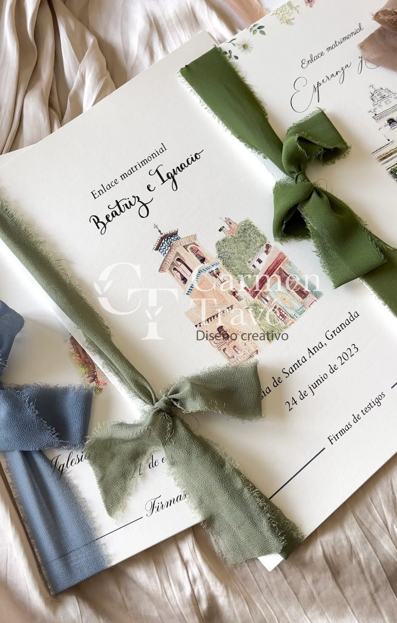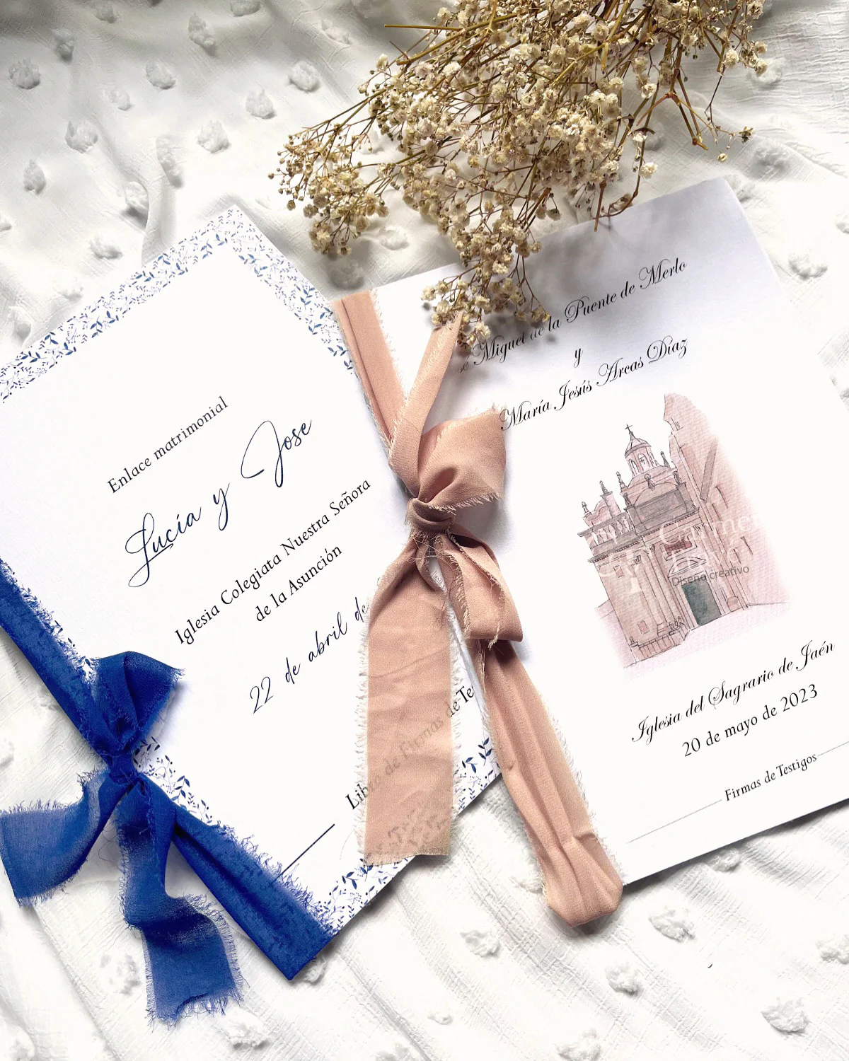 Nuestro libro de firmas para testigos es el complemento perfecto para tu boda, diseñado para que tus testigos y seres queridos dejen sus mensajes y buenos deseos. Personalizado con tus nombres y la fecha del enlace, este libro es una pieza elegante y significativa que guardarás para siempre. Fabricado con materiales de alta calidad y un diseño exclusivo, este libro no solo es funcional, sino también un hermoso recuerdo de uno de los días más importantes de tu vida.