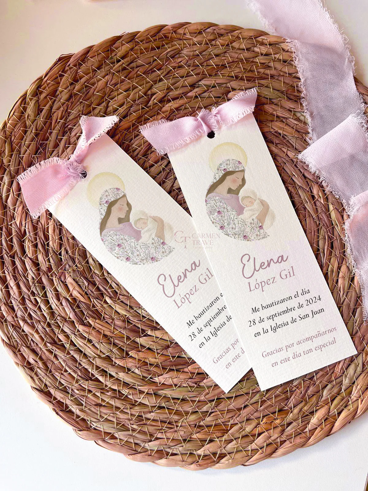 Los marcapáginas Virgencitas son un detalle precioso para recordar un día tan especial como la primera comunión o el bautizo. Personalizables en colores y diseño, son ideales como recordatorio para tus invitados. Con un estilo delicado y único, estos marcapáginas se convertirán en un recuerdo que todos querrán conservar. Son perfectos tanto para niños como para niñas, adaptándose a cualquier temática que tengas en mente.