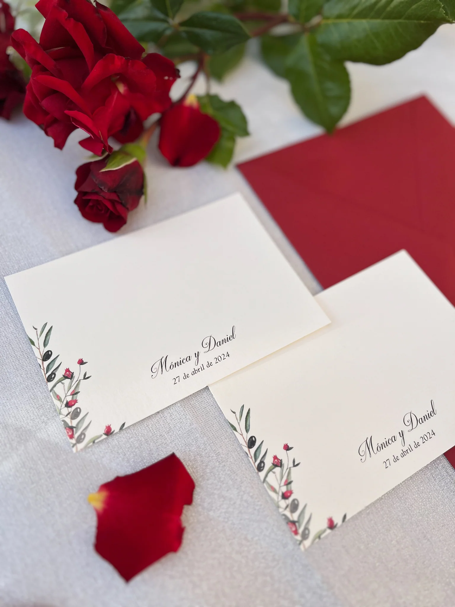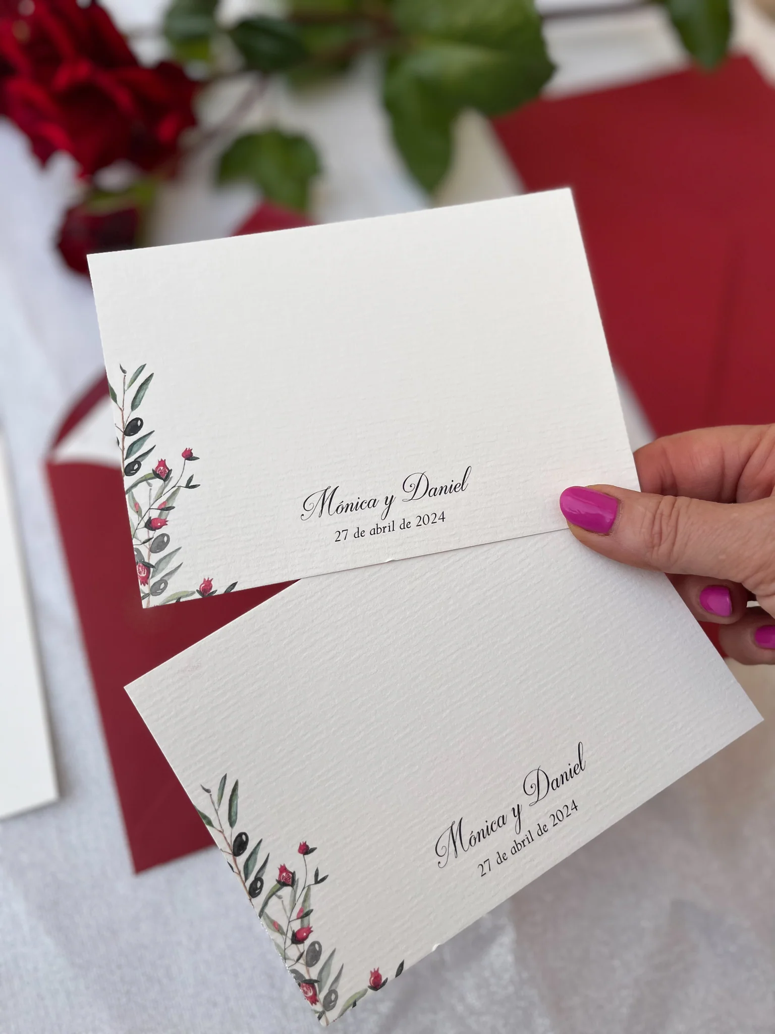 Personalizamos cada tarjeta con tus nombres, la fecha de tu boda y un diseño elegante que complementa la temática de tu celebración. Puedes añadir mensajes personales que conecten con tus invitados, transmitiendo gratitud y amor por su presencia en un día tan especial.